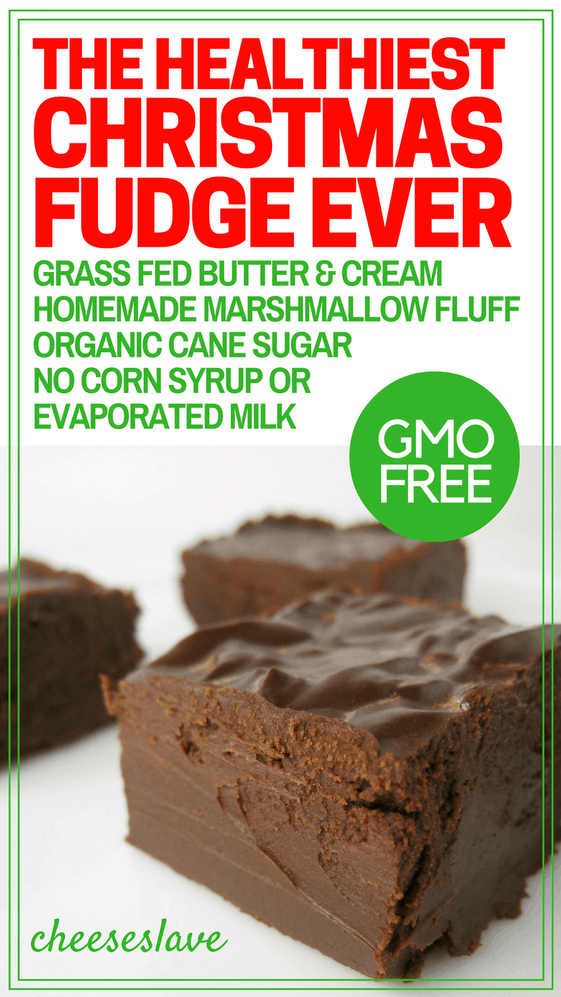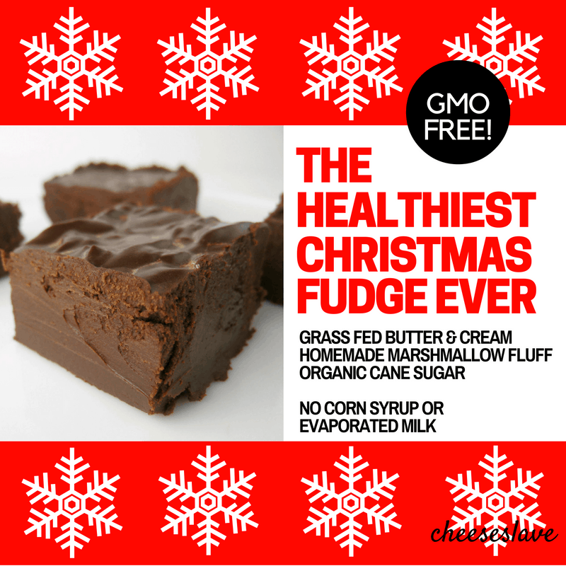 Looking for a healthy Christmas fudge? Traditional Christmas fudge is made with homemade marshmallow fluff (just honey and egg whites), cream, butter, chocolate and sugar.