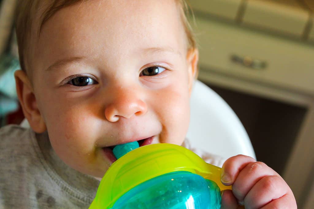 I feed it to 14-month old Baby Ollie in a sippy cup. I take out the pieces of vegetables and put them on his tray so he can feed himself. Then he drinks the soup from his sippy.