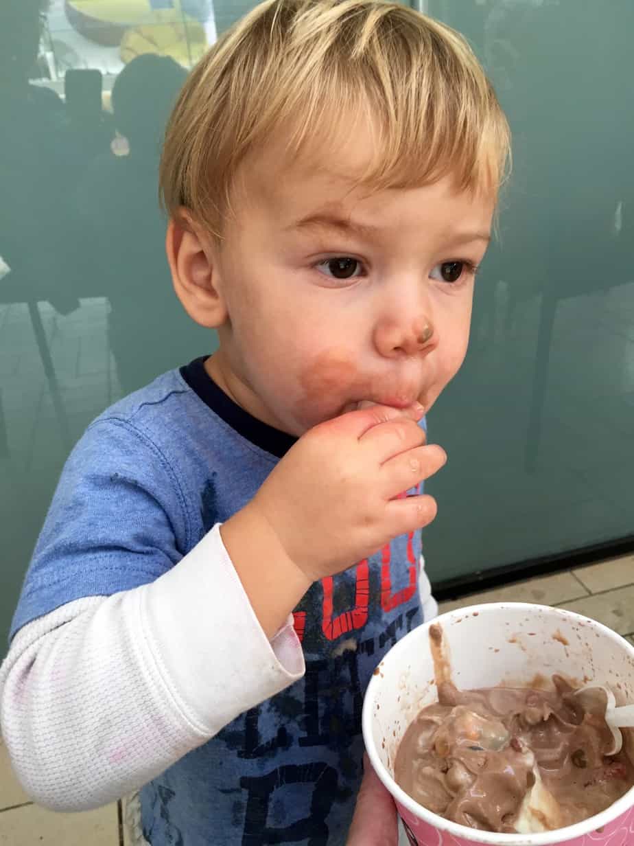 After that it was snack time. We normally do salami or cheese and chips or milk and cookies. But since it was a special day with Kit Kat, I let them get some frozen yogurt.