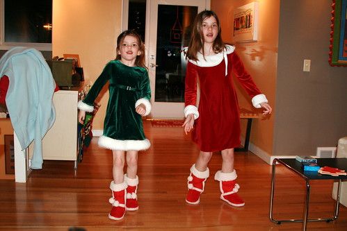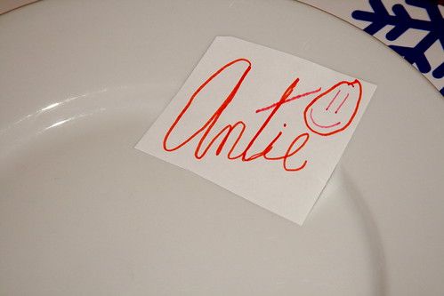 Christmas crackers have little toys inside (akin to our American Cracker Jacks), and colored paper crowns (see above photo — my sister and niece wearing the crowns) which you wear on your head whilst you sip your port and eat your pudding.