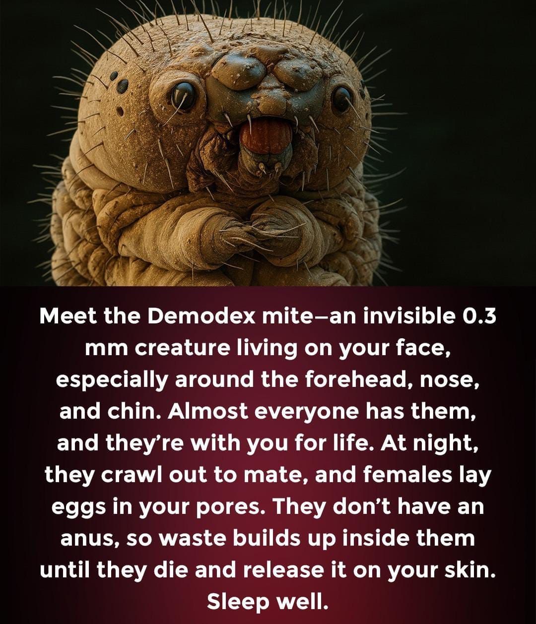YES you can treat these creepy crawlers with that good old "horse paste" – you know, the one they didn't let us talk about back in 2021 – you can get at the Tractor Supply. (Source: Demodex on Wikipedia)