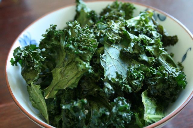 Baked Kale Chips make a delicious snack, appetizer or side dish — serve with sandwiches or soup.