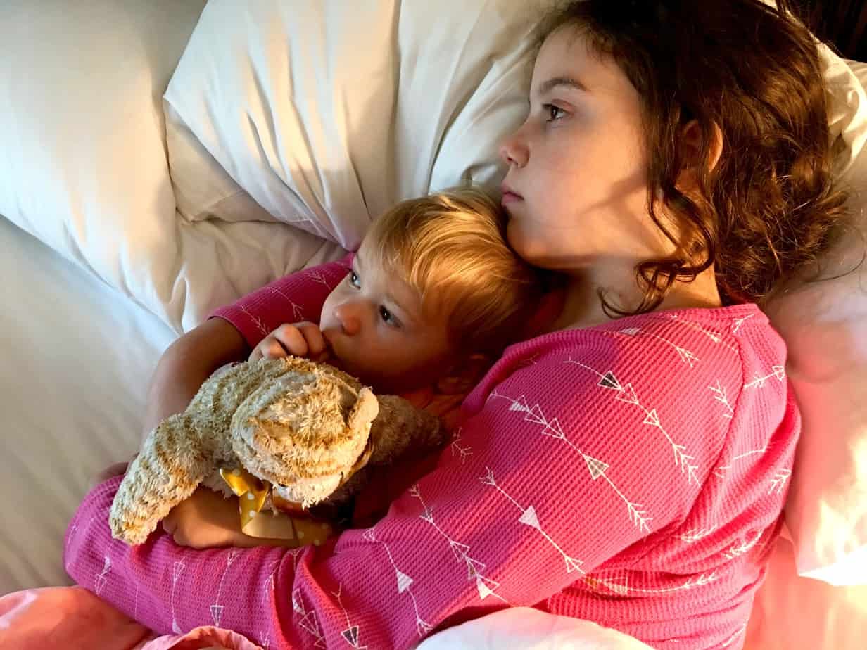After they swam, both kids were cold and tired and starving. Like refugees, crying for blankets and room service.