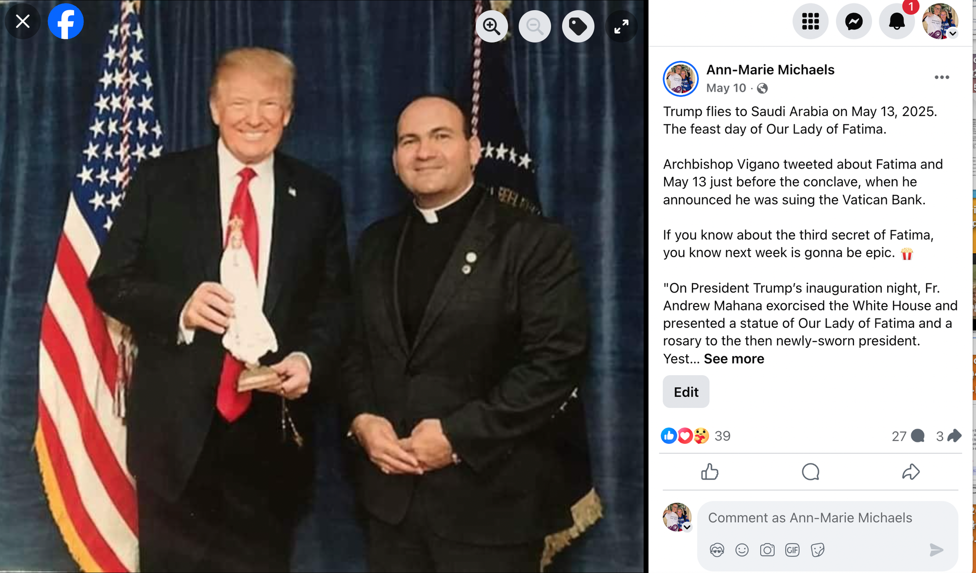 Melania Trump is Catholic and the White House was in fact exorcised by Father Andre Mahanna (see my cover pic on my Facebook page). I know that from the same friend who told me about the White House masses. She is good friends with Father Andre.
