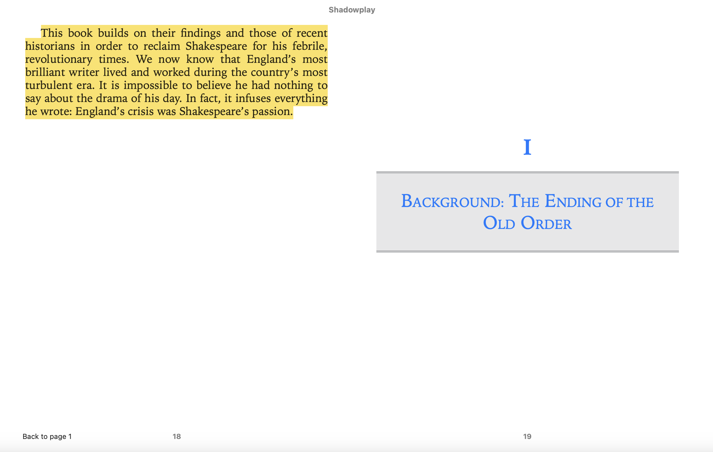 Shadowplay, written by Brit Clare Asquith, is extremely well-researched with original sources from local cathedrals and libraries.