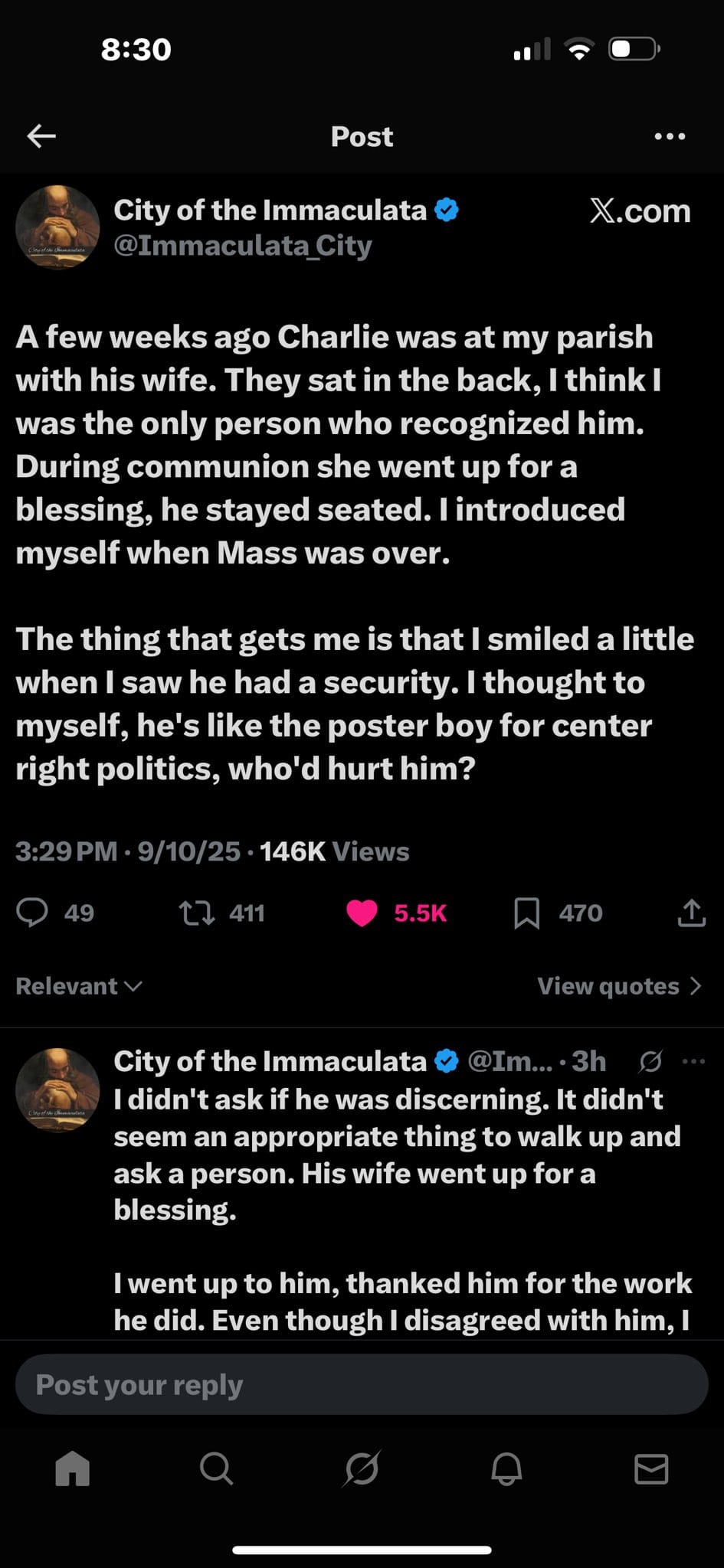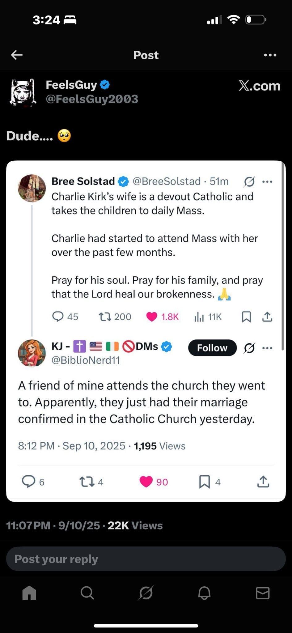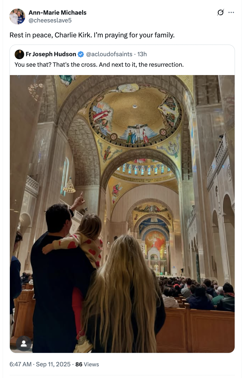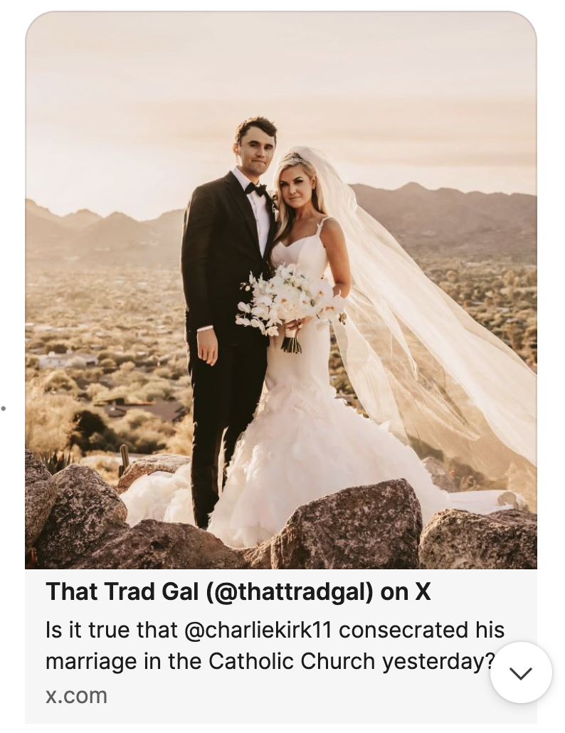 I'm not saying Charlie Kirk was a Catholic, but we know his wife, Erika is. And they just had their marriage consecrated in the Catholic Church.