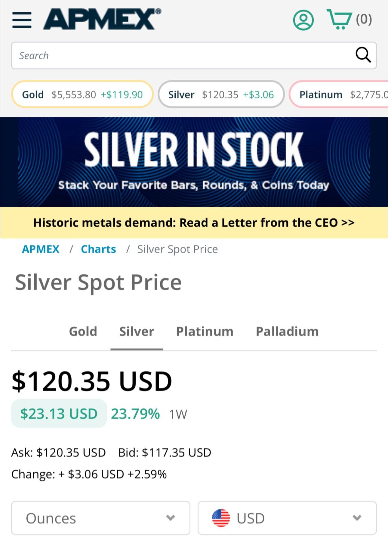 Note: Have ya'll been watching the price of silver and gold lately? Silver hit an all-time high of $120 yesterday.