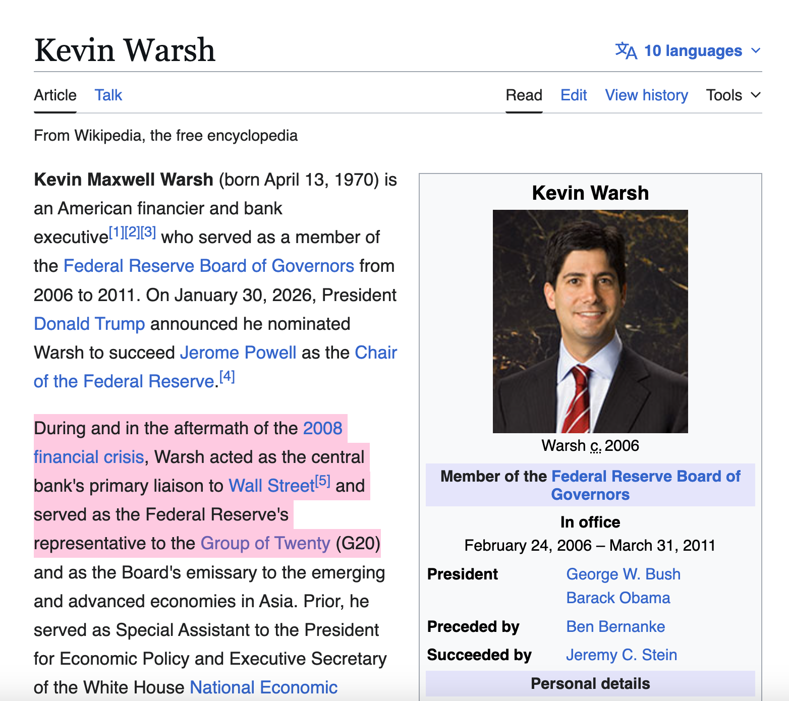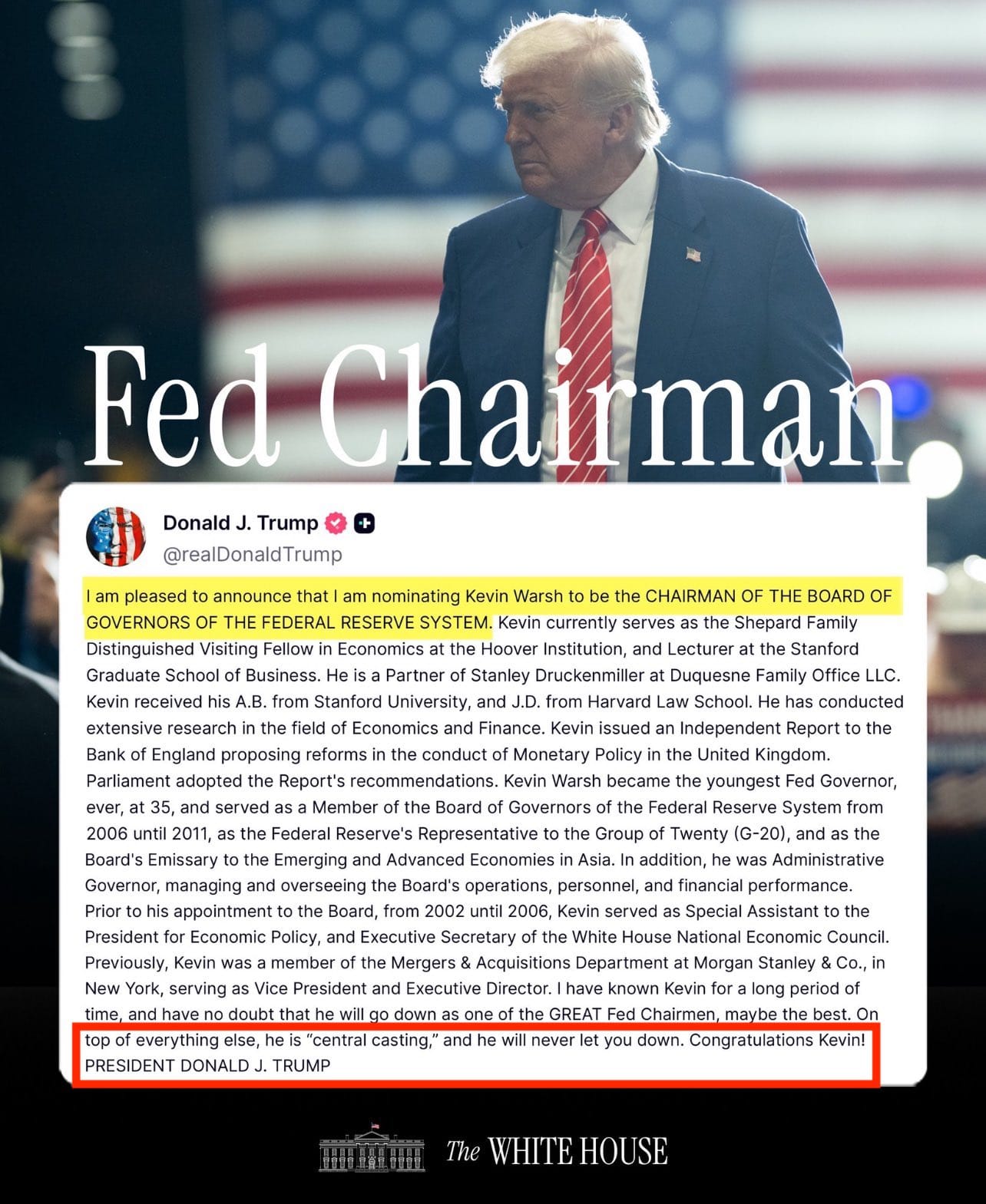 As I was writing this blog post, Trump announced his new Federal Reserve pick, Kevin Warsh, who is obviously a deep state, swamp creature.