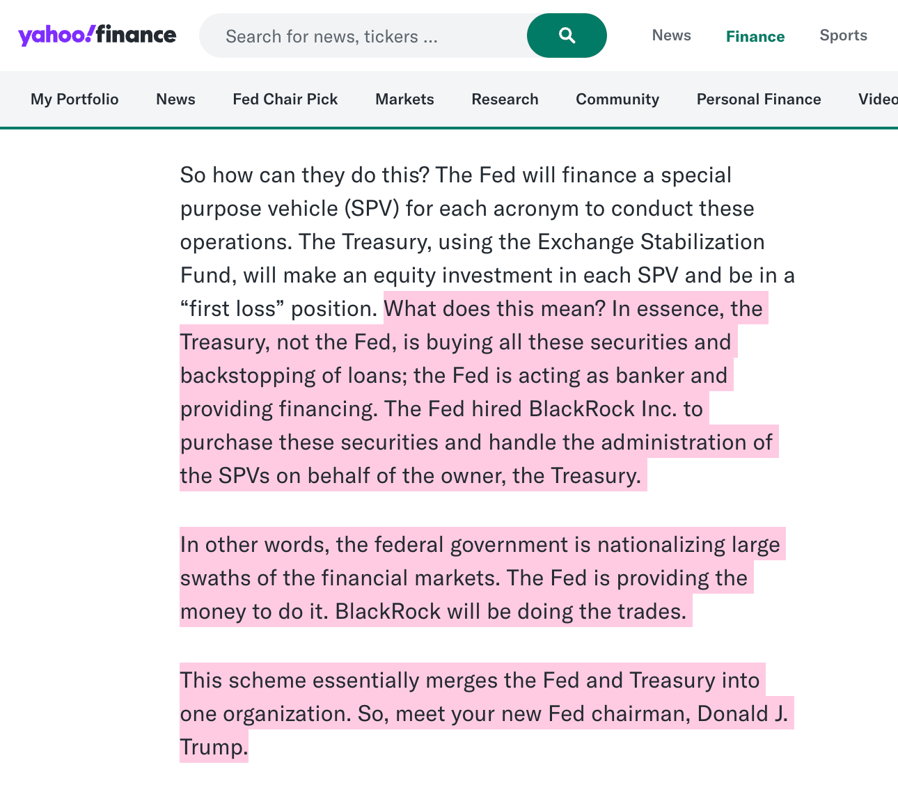 Also, I don’t believe that the Federal Reserve is going to exist for much longer. So I don't think it matters who gets nominated for Fed Chairman. Because it won't exist.