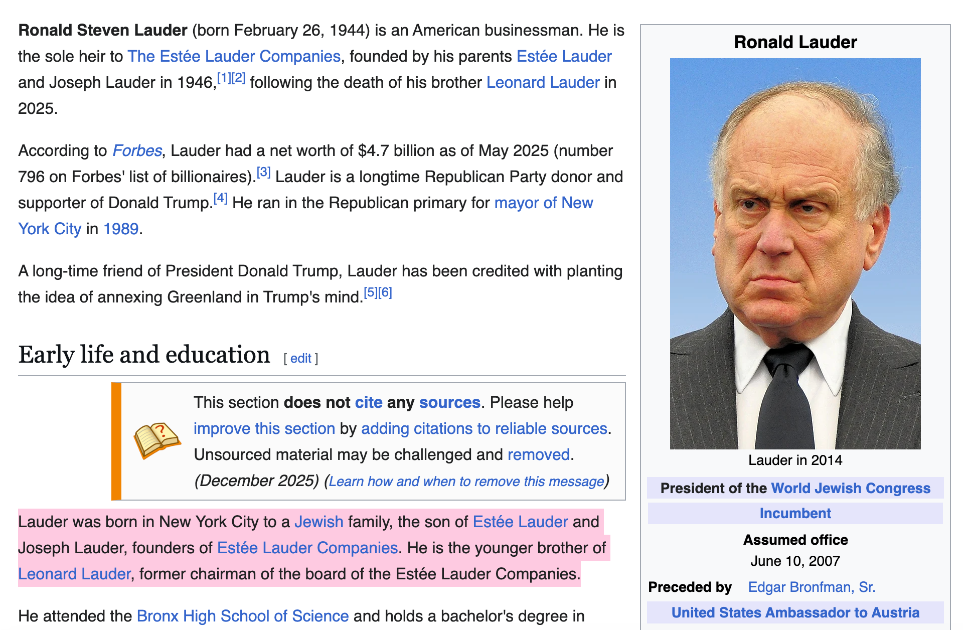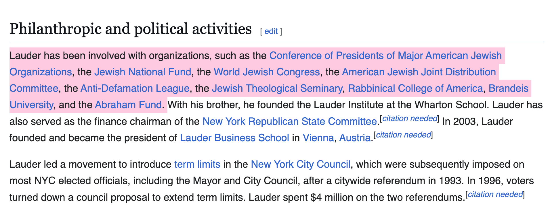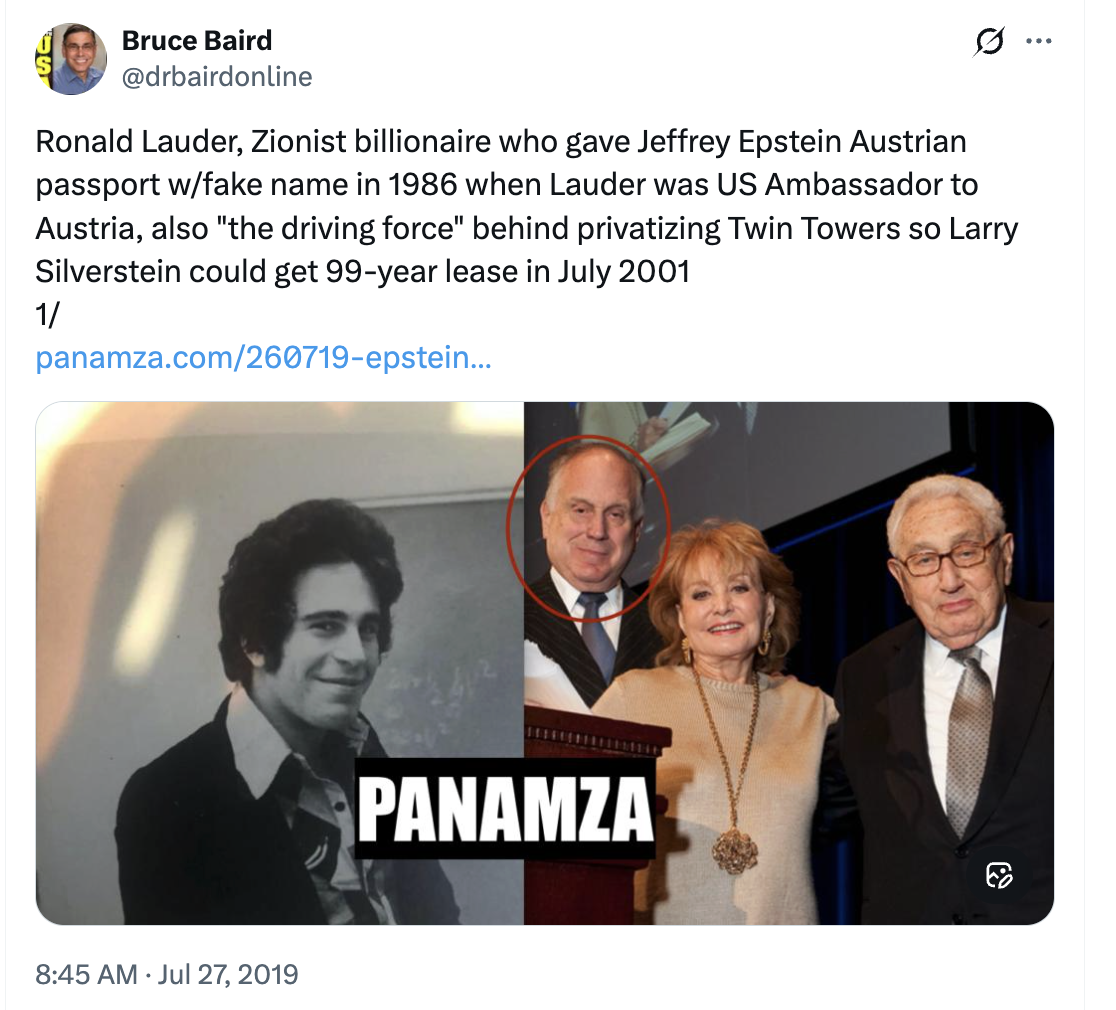If you're not familiar with Lauder, I recommend doing some digging. I just did a quick search on X for "ronald lauder ties to jeffrey epstein."