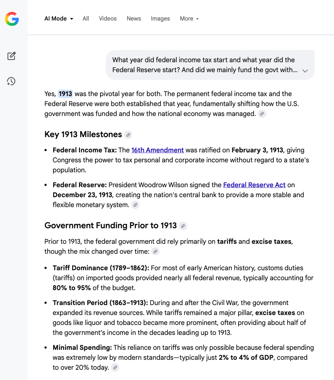 And did you know that we didn't even have federal income taxes until 1913? The same year they started the Federal Reserve?