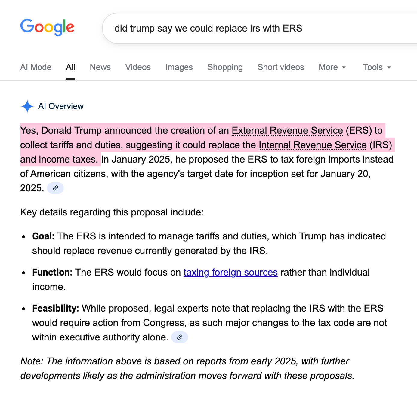 Not only that, but President Trump has literally said that the new External Revenue Service could replace the Internal Revenue Service