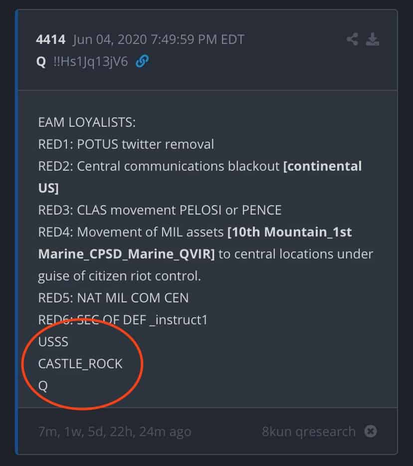 If you’ve been following Q, you know the phrase Castle Rock. There’s a ton of speculation on the boards about what it means.