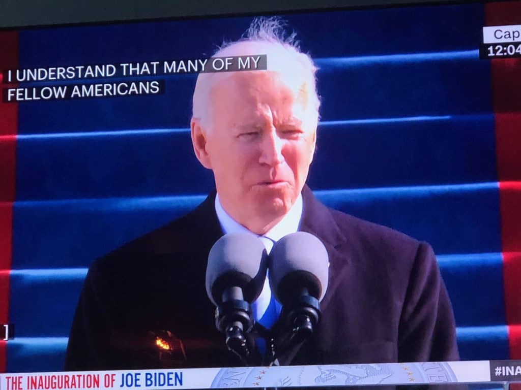 I watched the entire inauguration show, from the moment I got back from dropping my kids at school until I had to go pick them up. I watched on the big screen in our living room, and I was flipping between the different channels to see what the coverage was from the different networks.
