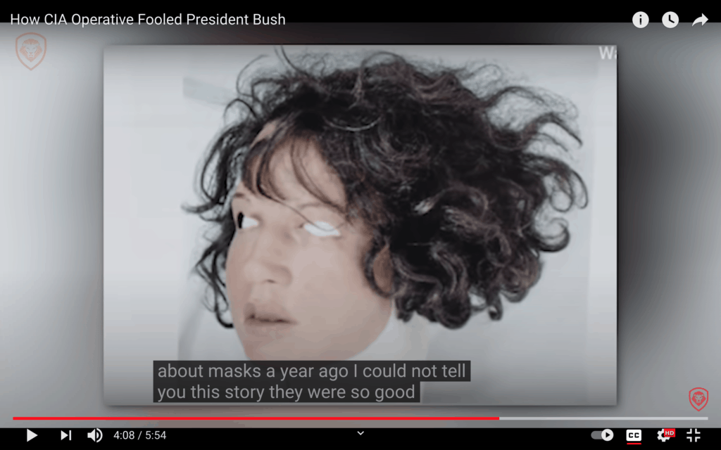 In this next video with Jonna Mendez, at about 4 minutes in, she shares the story of how she tricked President George W. Bush with a mask.