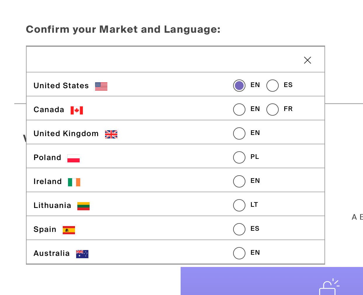 4. Confirm that you are in the United States. If you're not in the United States, you can select from other countries (see below which countries MONAT is in).