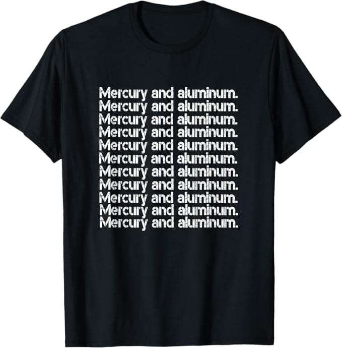 This got me thinking because they put mercury and aluminum in vaccines – which they really don't have to. I got this shirt a few years ago: