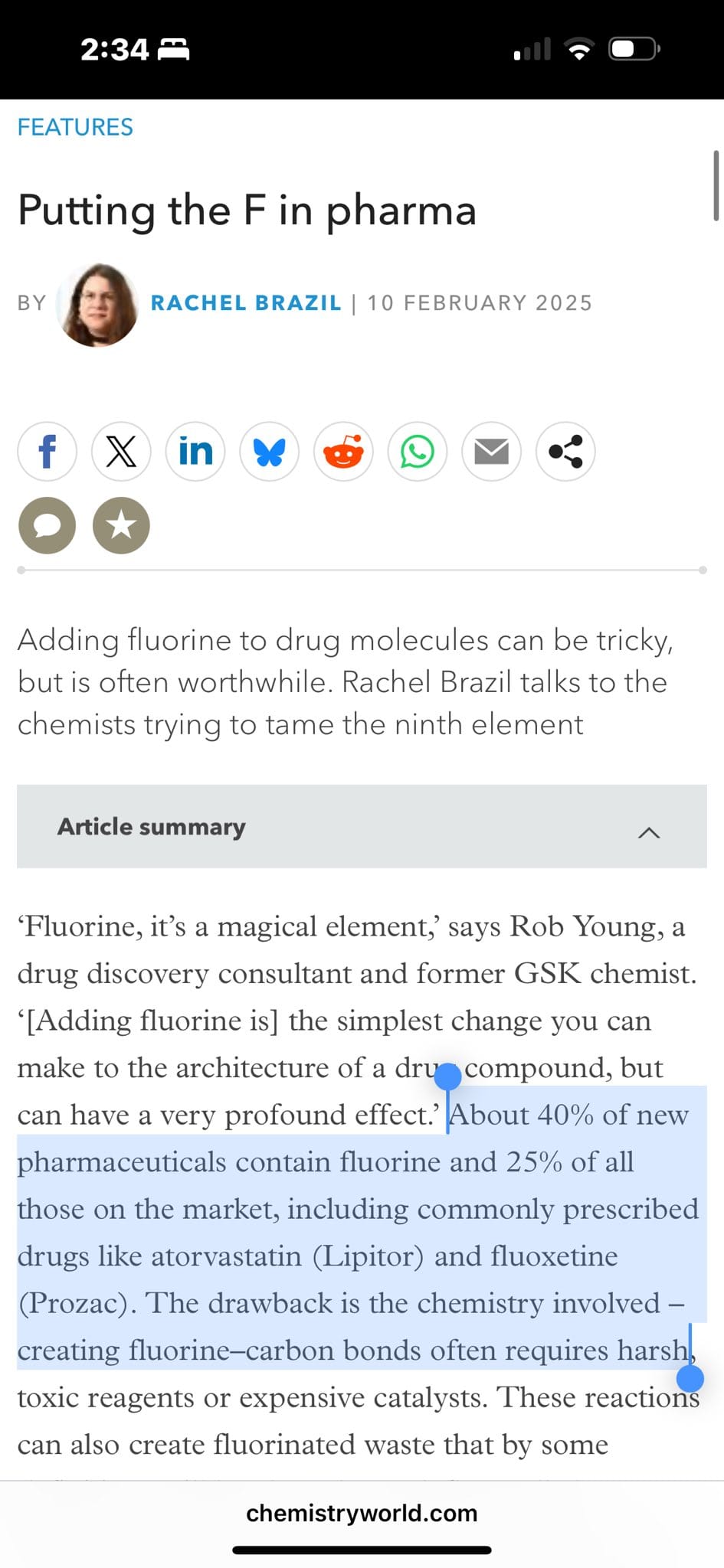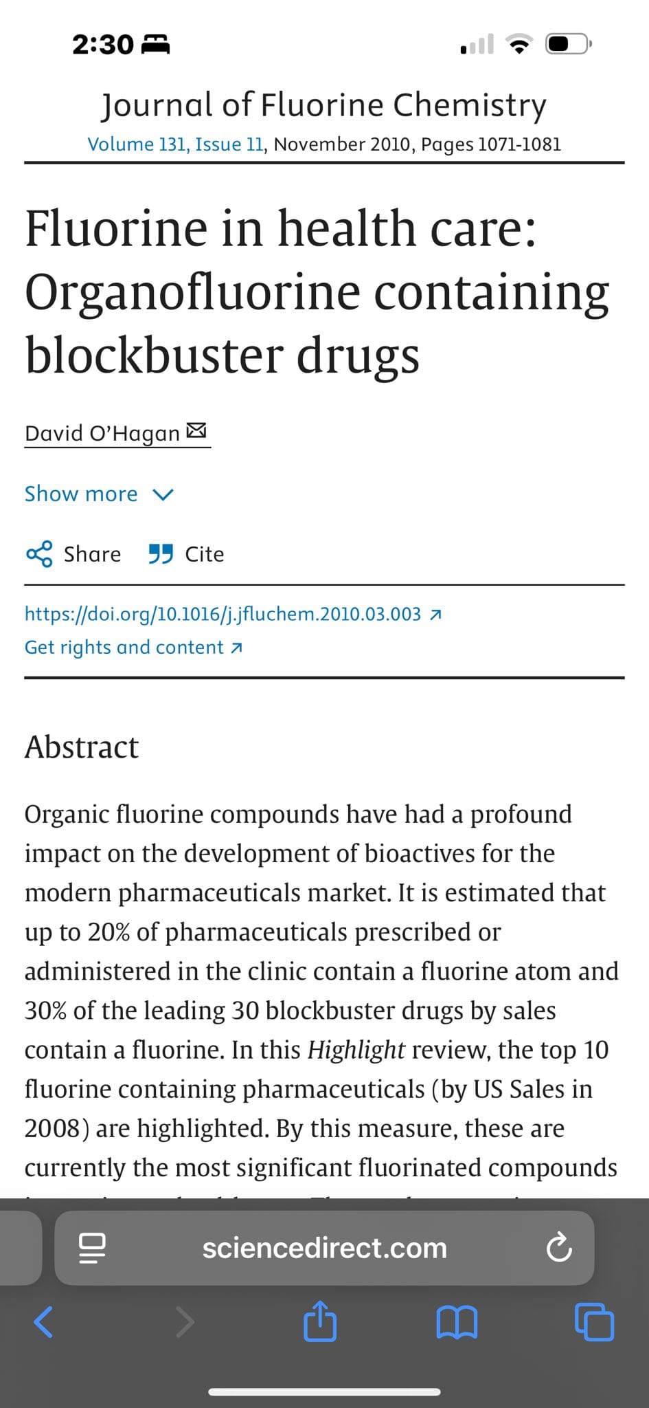 About 40% of new drugs contain fluorine and 25% of all drugs contain fluoride. See, like I keep telling you, it's not just water and toothpaste like they trick you into believing!