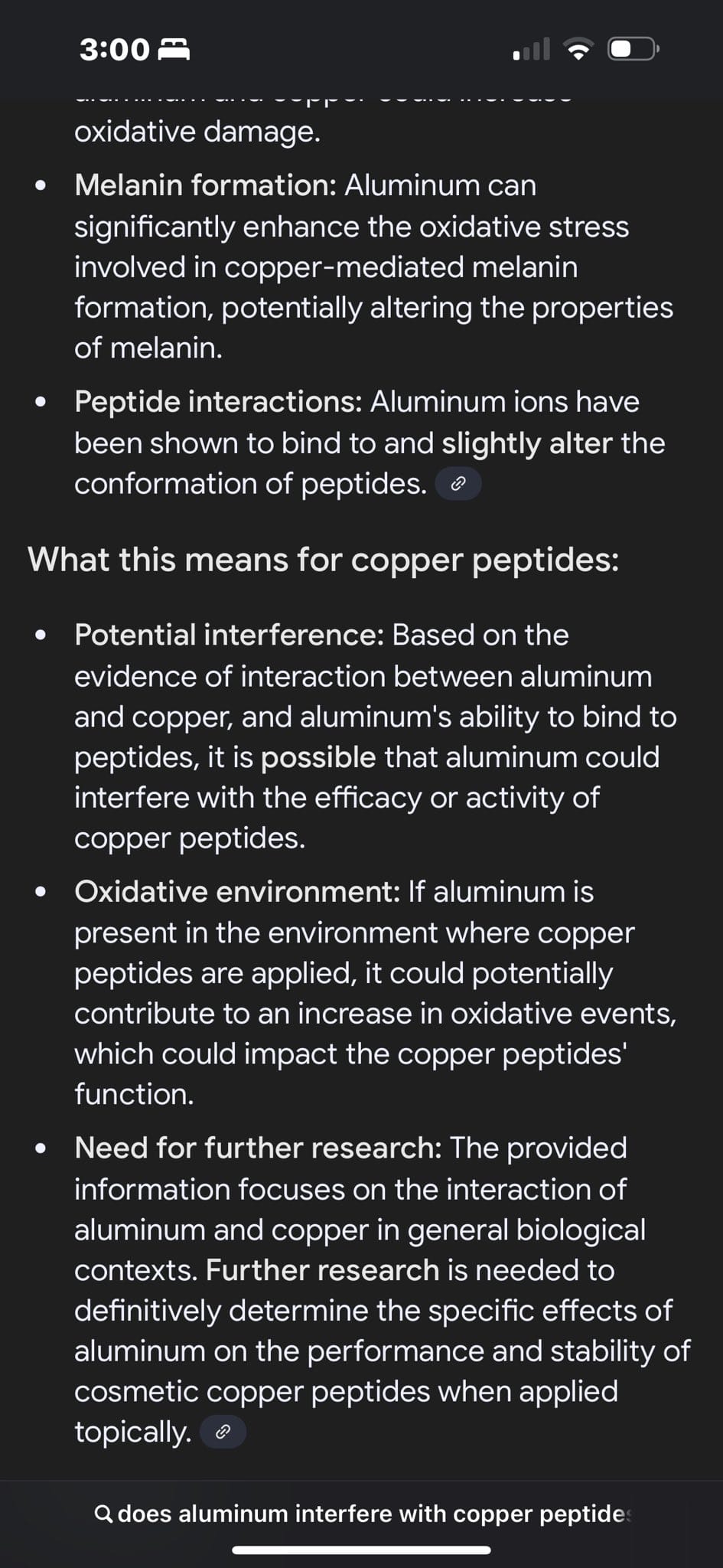 Then I asked Google, Does aluminum interfere with copper peptides?