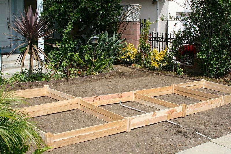 We are getting closer to a front yard vegetable garden! Last weekend I laid out the raised beds.