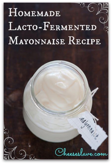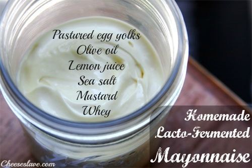 The ingredients in this homemade lacto-fermented mayonnaise recipe are real olive oil, egg yolks, a little mustard, sea salt, and that’s it. Plus a little fresh whey — which is what makes it lacto-fermented. See my recipe for how to make whey.