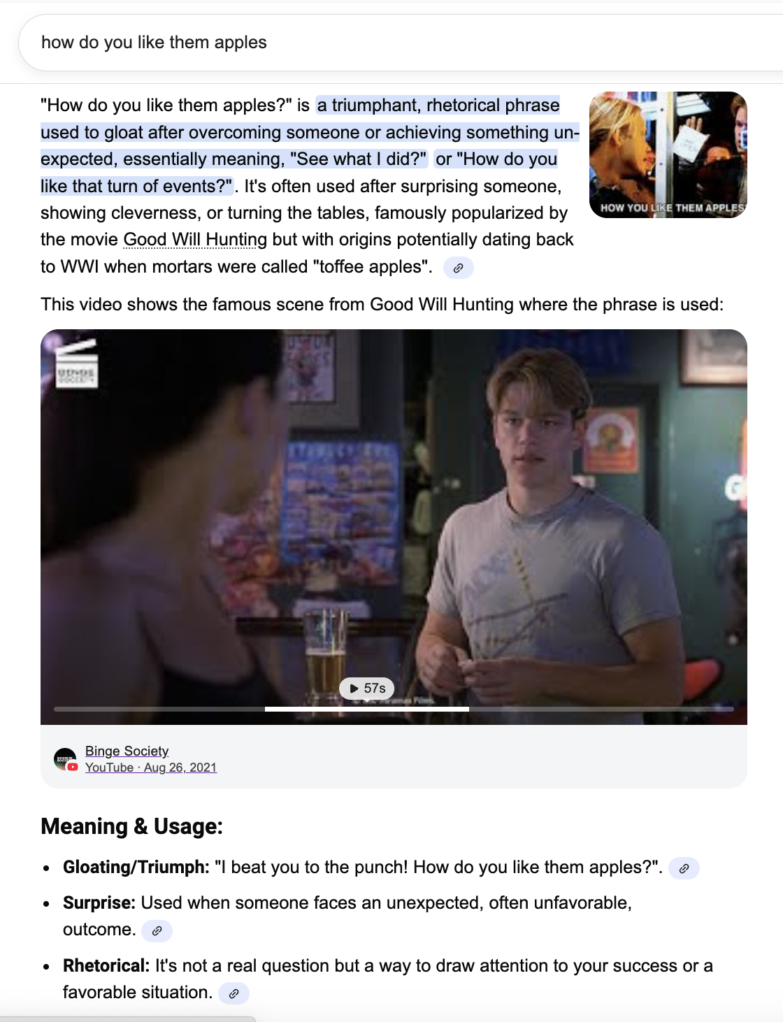 Do you remember that scene in Good Will Hunting, when he says "How do you like them apples?"