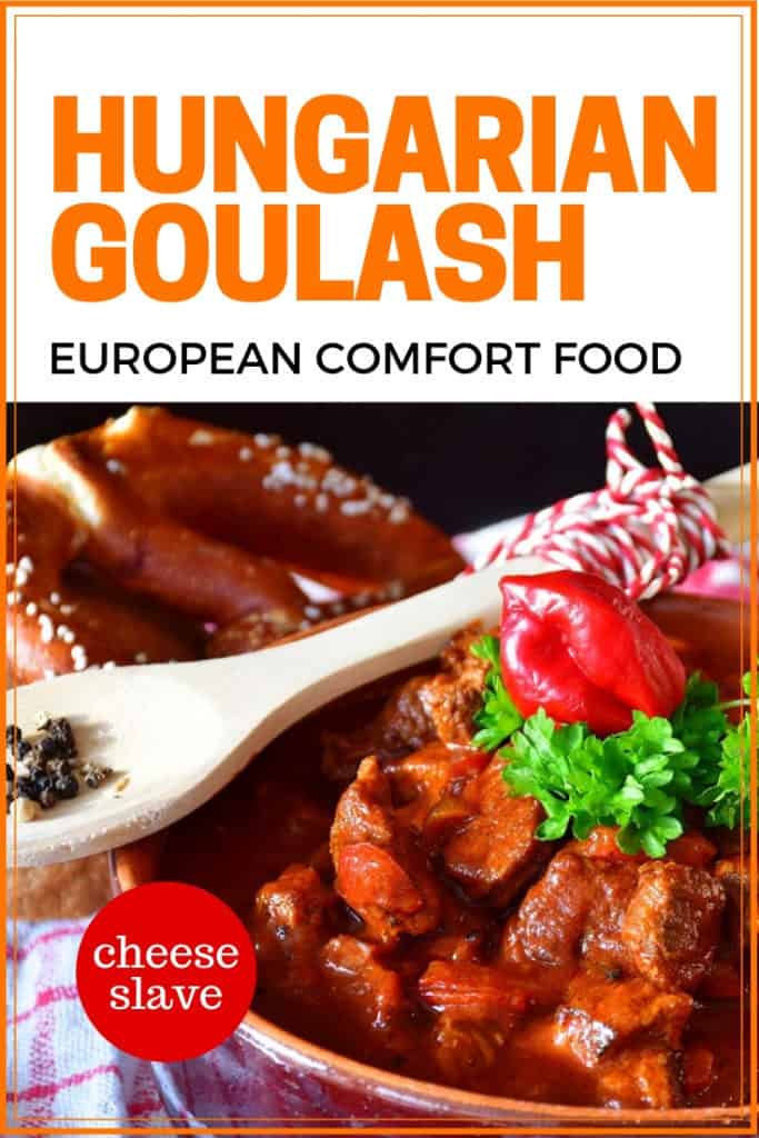 Hungarian goulash is somewhere between a soup and a stew. If you like, you can serve it over pasta like we are doing, or you can serve it with some boiled potatoes. Or serve all by itself.