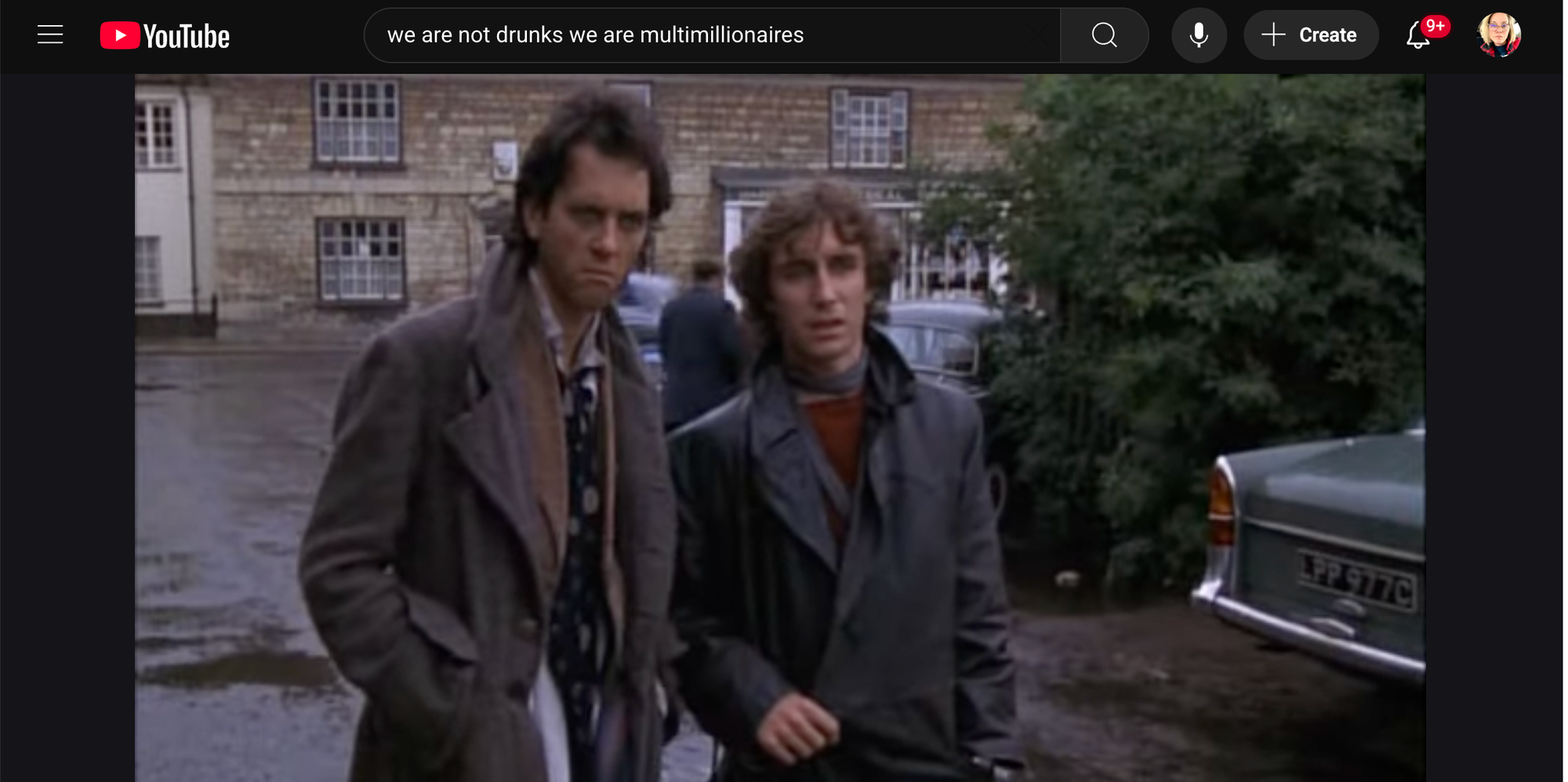 Like that line from one of my favorite movies, Withnail and I, "We are not drunks, we are multimillionaires." Watch the clip.
