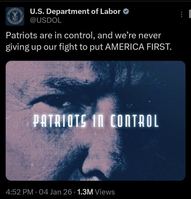 Here's a tweet from the US Department of Labor from January 4, 2026: