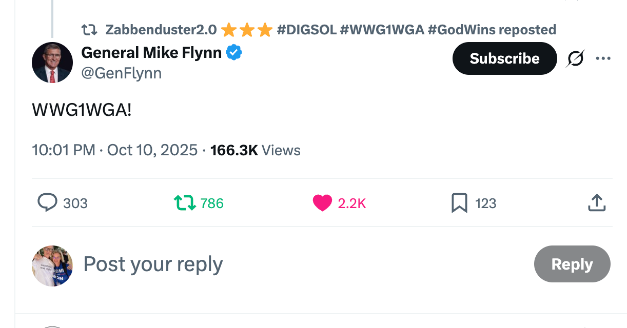 I also just happened to see this post from General Flynn today – from October 2025: