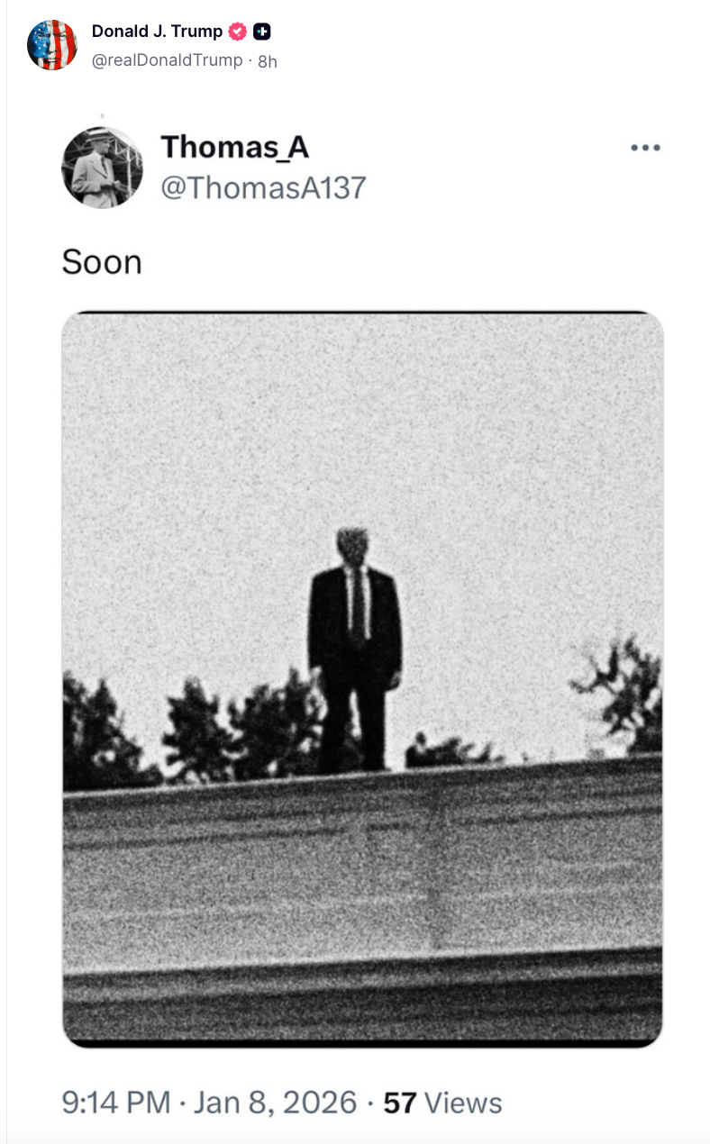 Among Trump supporters, this is being interpreted as a teaser or signal for impending major actions—things like high-profile arrests, policy rollouts, deportations, or "draining the swamp" once he's back in office (inauguration is January 20, but in 2025, not 2026; this might reflect ongoing events in his second term in this timeline).