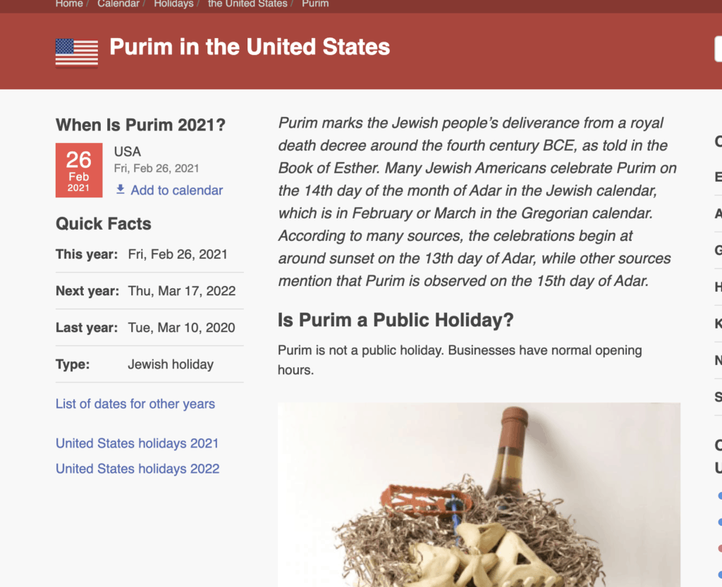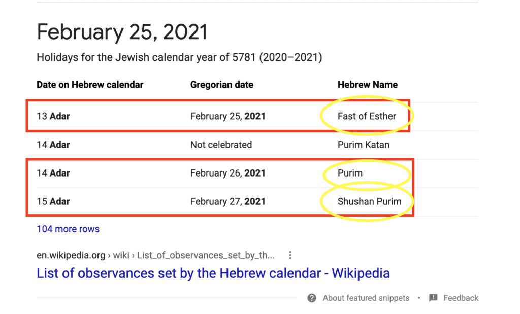 So Purim in 2021 starts on the 25th of February.