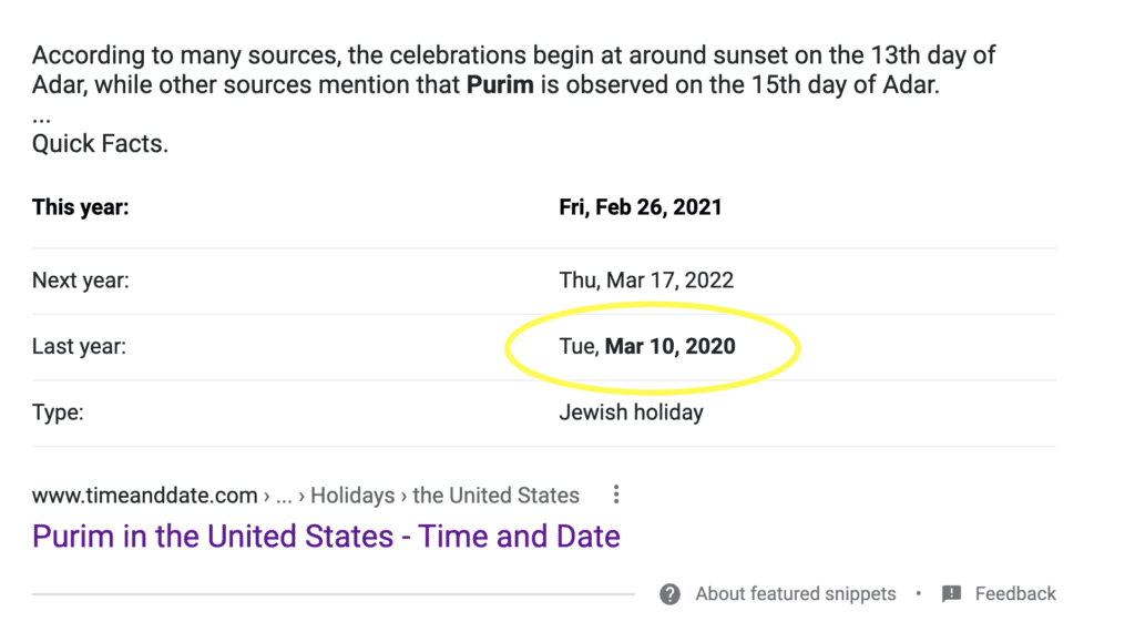 Interestingly, last year, Purim fell on the evening of March 9th, 2020.