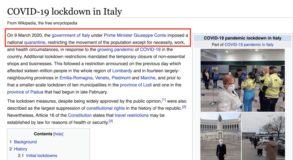 That was the lockdown of the first country in the western world: Italy.
