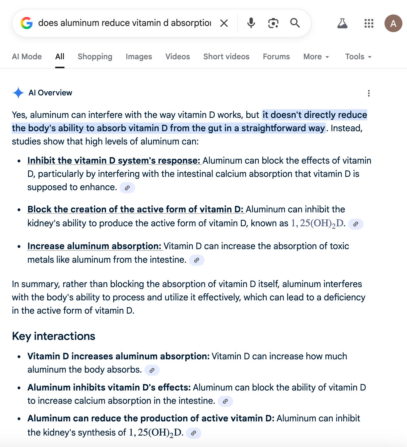So I looked it up. It's true, aluminum reduces vitamin D absorption, blocks the creation of vitamin D, and inhibits vitamin D's effects.