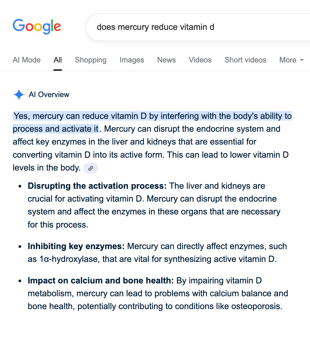 Guess what, mercury and fluoride also interfere with the body's ability to process and activate vitamin D.