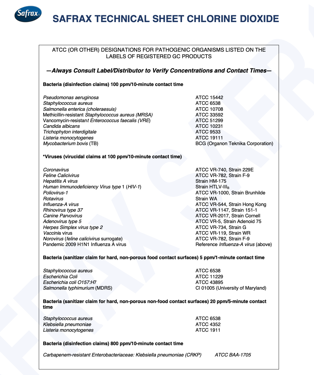 To learn more about Safrax chlorine dioxide tablets, check out their technical sheet.