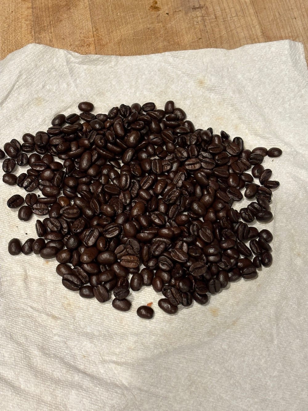 - However, it is important that you dry the coffee beans (so they don't get moldy). If you want to use them the next morning, just spread them out on in a thin layer on a paper towel overnight. Better yet, put them in the dehydrator on the lowest setting and let it run for 12 hours or so.