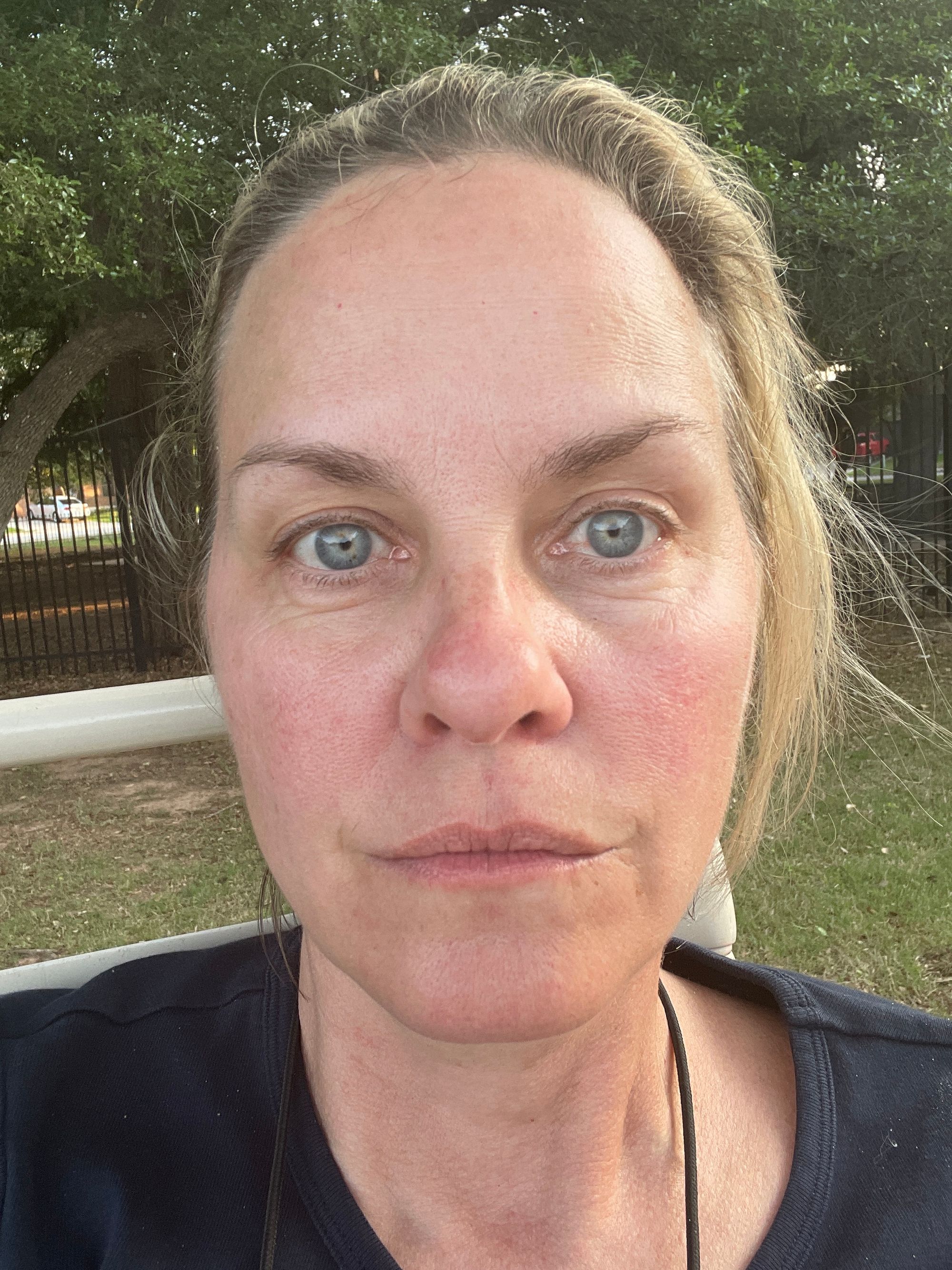 I took the photo on the left on February 28, just 2 days on the pool water. I took the photo on the right yesterday afternoon sitting outside. No makeup, no filters. Just my face.