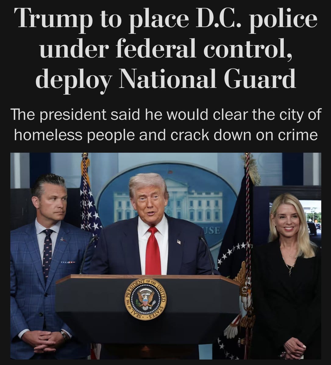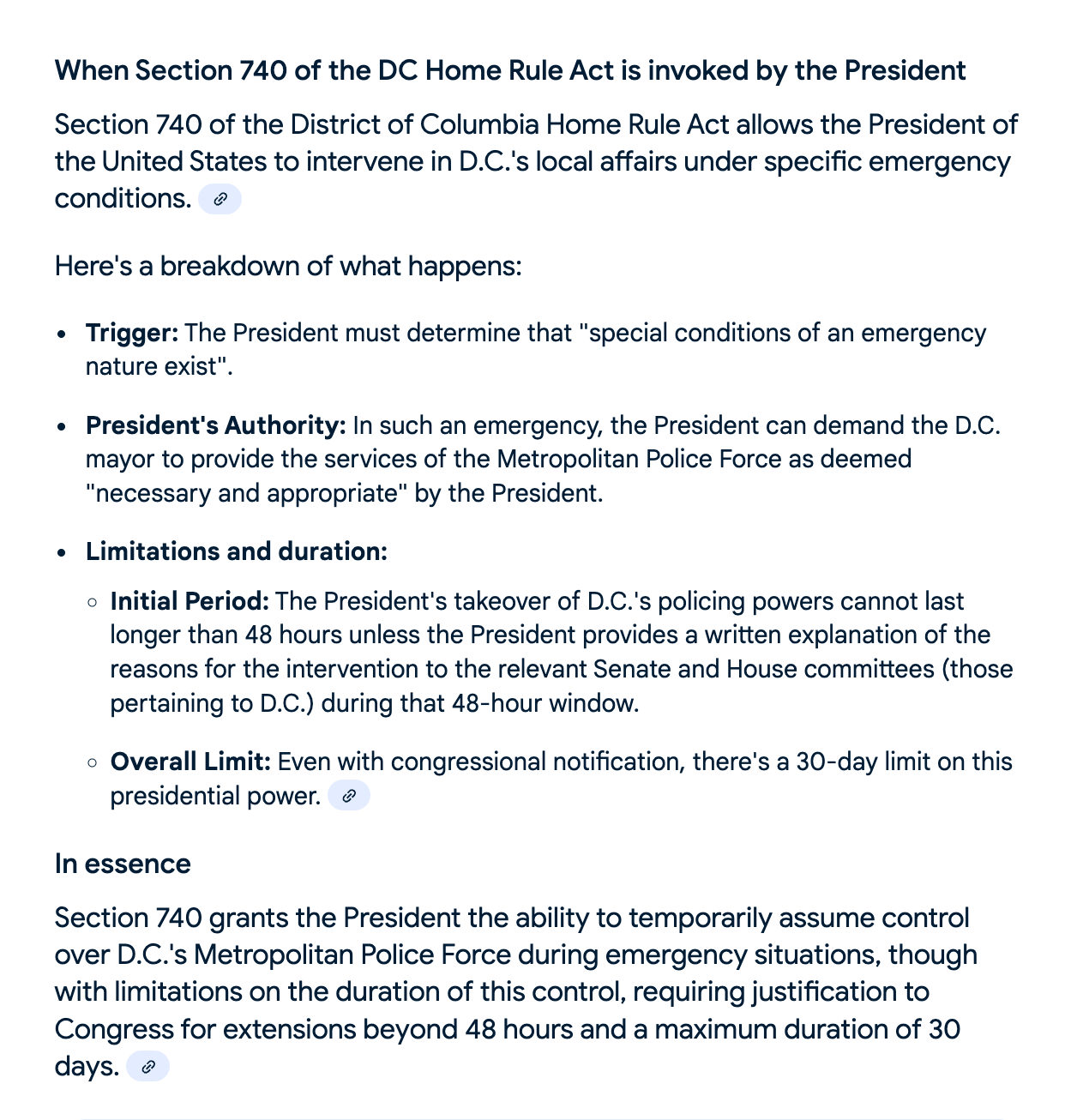 This past Monday morning, President Trump announced that the federal government will take over the DC police department, deploying the National Guard, and invoking Section 740 of the Home Rule Act.