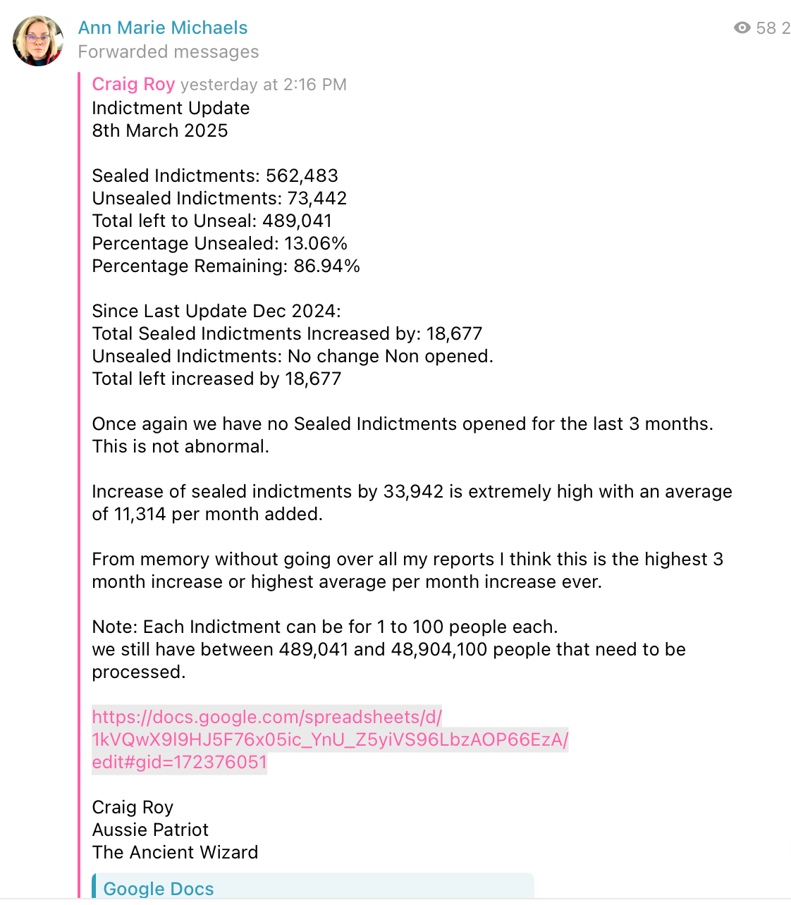 Here's my friend Craig from Australia, posting about the sealed indictments back in March of this year when there were over 560,000: