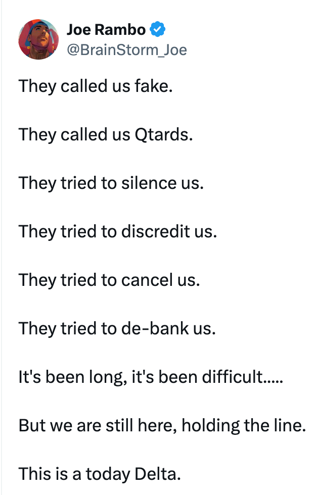 People made fun of us "Q Tards" forever, calling us conspiracy theorists. But what people are about to find out is we were right the whole time. It just took a lot longer than we thought it would. Haha!