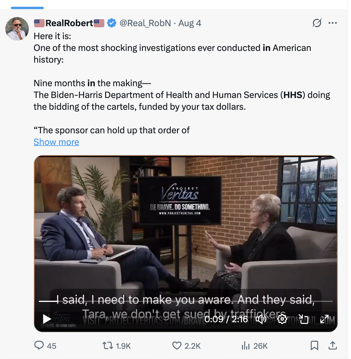 Back in 2022, Project Veritas investigated and interviewed HHS whistleblower Tara Lee Rodas who said HHS was involved in trafficking children: