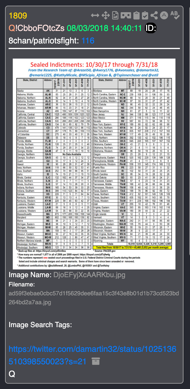 We "QTards" have been tracking these sealed indictments ever since Q told us about them back in 2018.