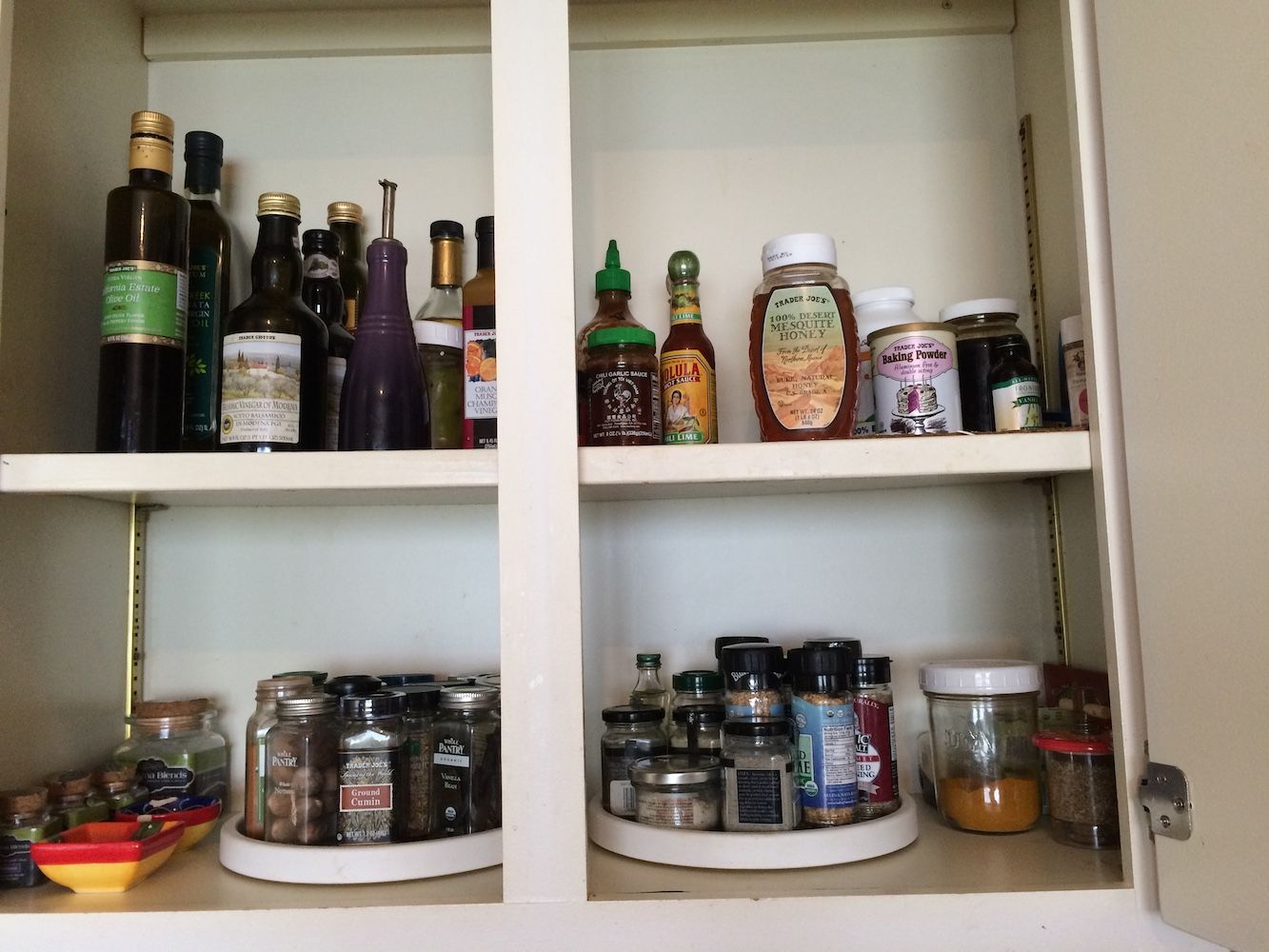 I keep larger quantities of these foods in the garage in my extended pantry. For example, in the extended pantry I have 5 gallon buckets of brown rice, sushi rice, basmati rice, popcorn, black beans, and so forth. This way I can buy things a lot cheaper, and we just refill the mason jars from the buckets as needed.
