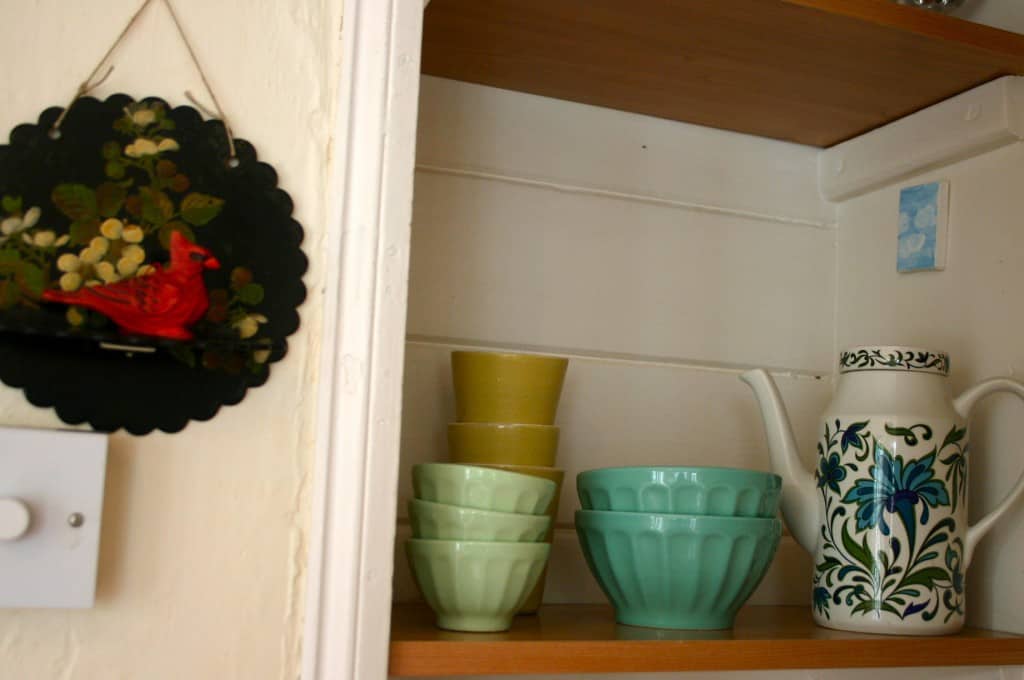 Things You Would Change: Most sinks in England are tiny and only have one compartment. Mine is larger than some, but the one-compartment thing is a real challenge! I have heard that most people don’t really rinse their dishes, or if they do, they just pour water over the backs on them on the drain board! So, a larger, two-compartment sink would be pretty dreamy at this point– so would a dishwasher! Our freezer is also pretty tiny, so I wouldn’t turn down a bigger one, if someone offered…
