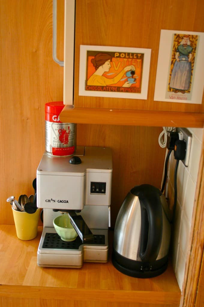 Favorite Tools & Gadgets: Well, I can’t point you to any good appliances, since every single one I have bought in the UK (besides my water kettle and espresso machine) has broken within weeks of purchase. But I really love having a good immersion blender (with whip and chopper attachments) and would use those almost daily. I cook most meals in my cast iron skillets, and love my super-sharp Henckels chef knife. I cannot imagine cooking without cast iron skillets, nice, big butcher block cutting boards, and good, sharp knives!