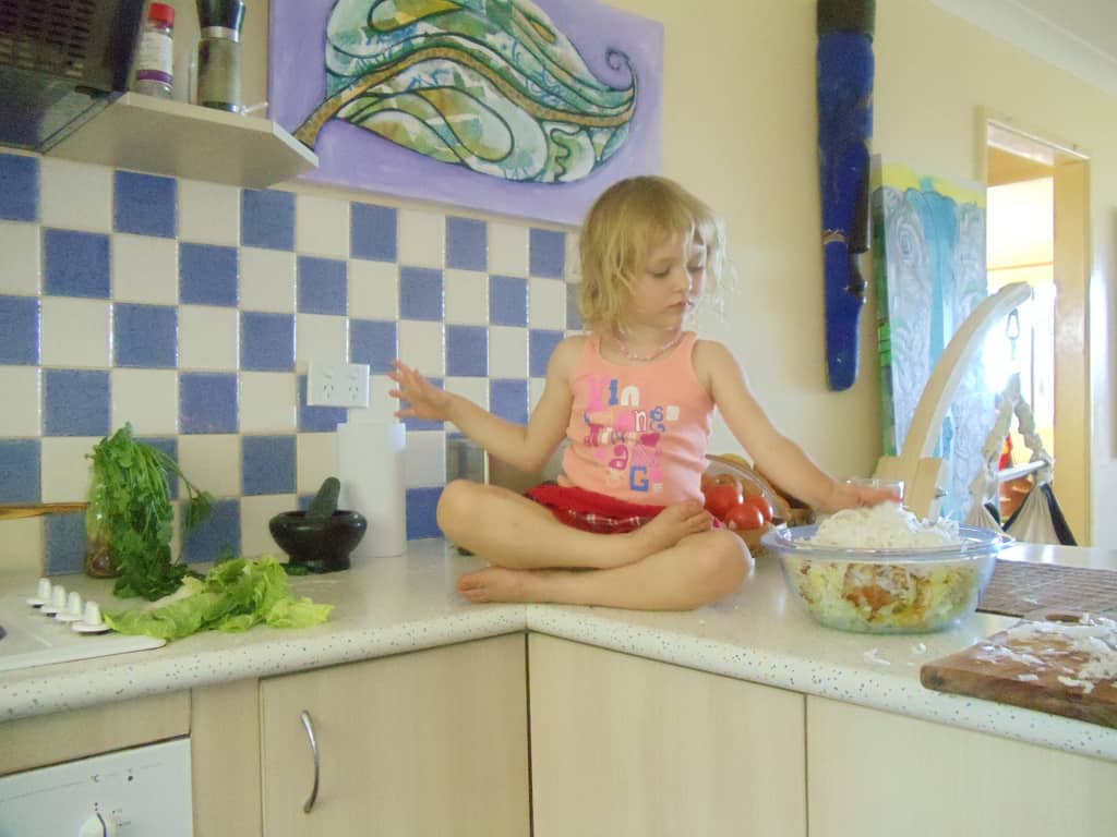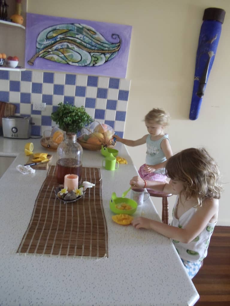 Current Family favorite Meal: It’s Spring here now, with all the fresh produce in season we are having a big bowl of Greek salad as a meal more then once a week. In Summer, Possion Cru is a weekly staple. I learnt how to make it when we lived in Tahiti, it’s basically raw fish marinated in lime juice tossed with fresh veggies and coconut milk. During the cooler months we have lots of soup and stew (we’ve done gaps intro twice now) and my favourite way to cook is to use a clay pot in the oven and cook slowly all afternoon. I make red wine stew, with lots of thyme, onions, garlic, osso bucco, and whatever root veges we have on hand. Also, slow cooked kangaroo curry- kangaroo meat, diced pumpkin, onions and coconut milk and lots of chai masala (a classic spice mix) it is so tender… I top it with a lots of chopped cilantro and ghee. We also love palak panner, which is a spinach and cheese curry. Miso with homemade zucchini noodles is a quick go to meal if there is broth in the fridge. We all like green juice, my favourite combo for spring is celery, green apple, grapefruit, lemongrass and lime, and superfood elixir smoothies too.