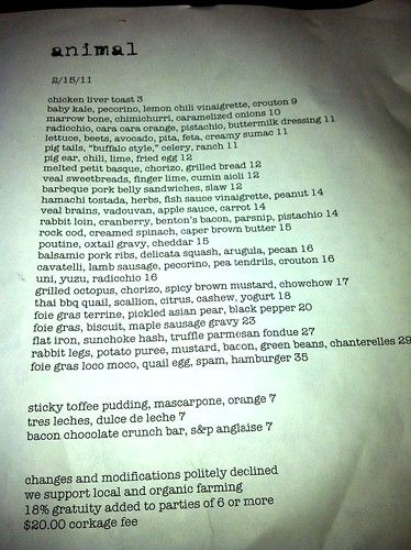 I’ve been dreaming of going to Animal Restaurant here in Los Angeles for almost a year now. Ever since I read the review in The New Yorker magazine.