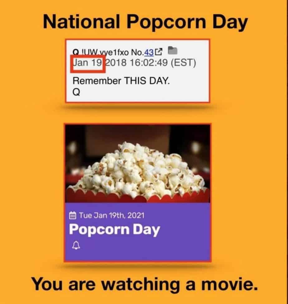 - Simon said the ten days of darkness will kick off anytime from today (Sunday through Wednesday the 20th.) We know Q told us the 19th was National Popcorn Day. He said he knows it’s a big range but it is all “moves and countermoves” as Dave of X22 Report always says and it just depends on how the mainstream media spins things.